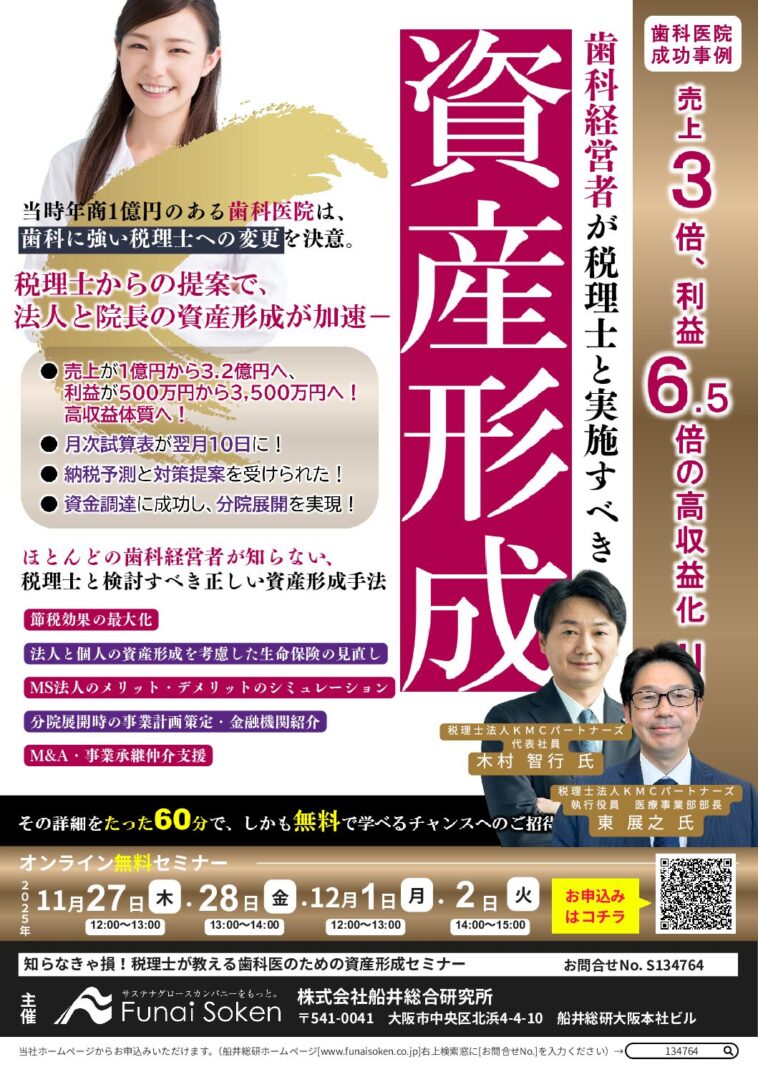 船井総研のセミナー【知らなきゃ損!税理士が教える歯科医の為の資産形成セミナー】に登壇いたします