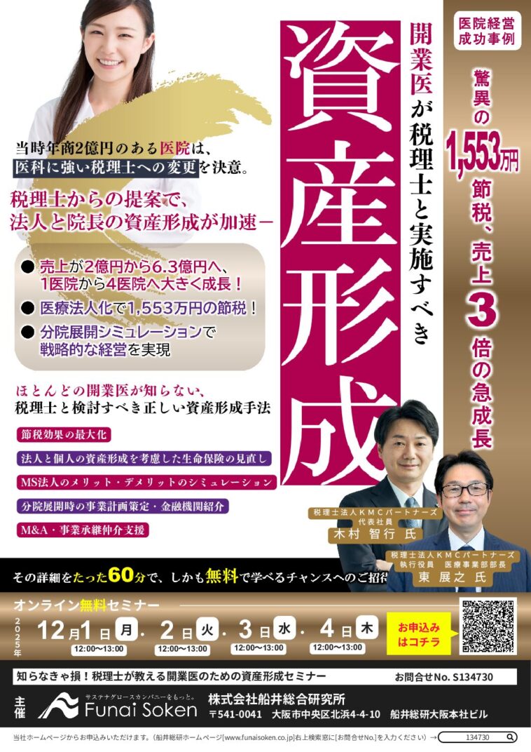 船井総研のセミナー【知らなきゃ損!税理士が教える開業医の為の資産形成セミナー】に登壇いたします